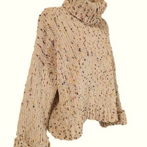 POL beige oversize confetti turtleneck sweater boxy cropped size S