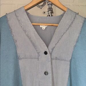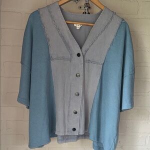 POL distressed shirt short sleeve waffle knit raw hem oversized blue grunge