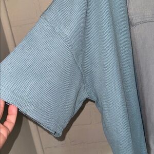 POL distressed shirt short sleeve waffle knit raw hem small oversized Robyn egg blue color
