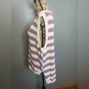 POL high low open knit sleeveless sweater V neck oversized patriotic beach vacay