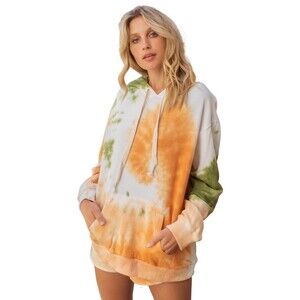 POL oversized boxy tie dye hoodie orange green size small