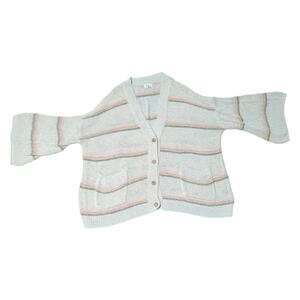 POL striped knit oversized button down bell sleeve boho cardigan beach preppy