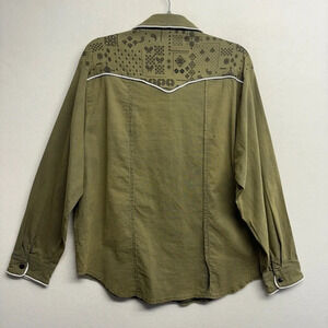 POL western button up Paisley M Olive Green women’s snap cowgirl