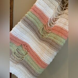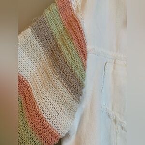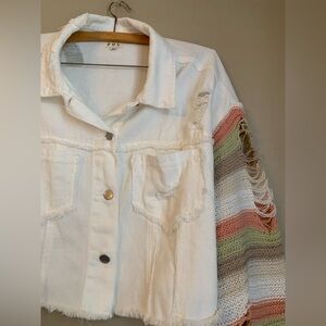 POL white sweater sleeve denim jean Jacket coat distressed boho coastal