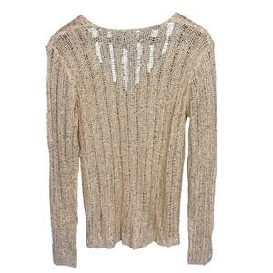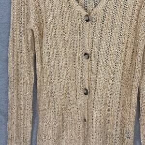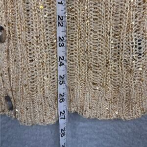 POL women’s Gold Sequined Cardigan Loose Knit Lightweight Button Size L