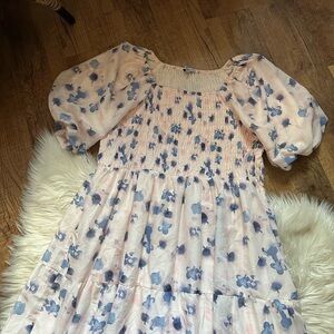 POLAGRAM Maylene Blue Floral Smocked Dress