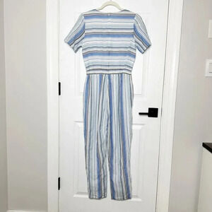 POLAGRAM Size S Blue Gray White Striped Short Sleeve Cropped Jumpsuit Cotton