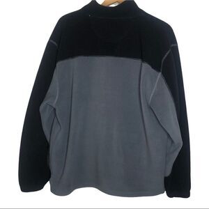 Polar Fleece Vermont Jacket, zipper front, Gray and black, some flaws: embroidery on the V and front zipper (see photos), Armpit to armpit: 23”, Length: 27” size L