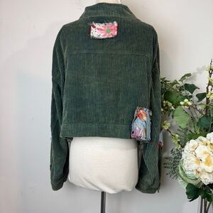 POL Corduroy Floral Patchwork Jacket | Large | Green Button Front
