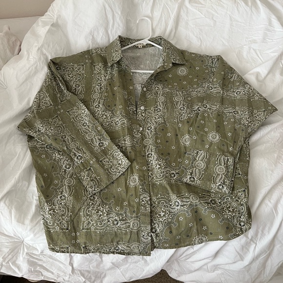 POL button down from Court’s General Store. Size Small. NWOT functioning front pocket. There’s a close up of the design and functioning pocket. In excellent condition and firm on price:)