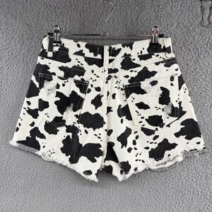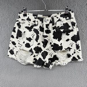 POL Cow Print Distressed High Rise Denim Shorts Women’s Small