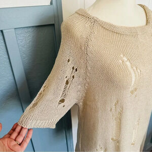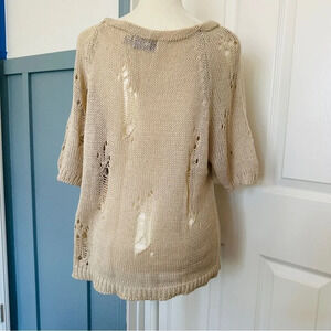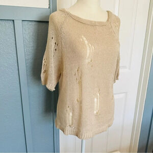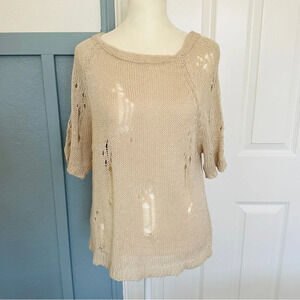 POL Cream Knit Distressed Short Sleeve Sweater Top