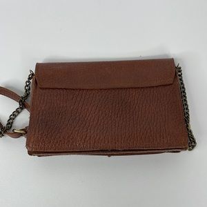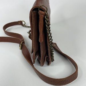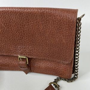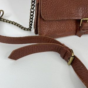 POLDER Pebbled Leather Crossbody Bag Saddle Brown Cognac Chain Buckle