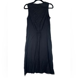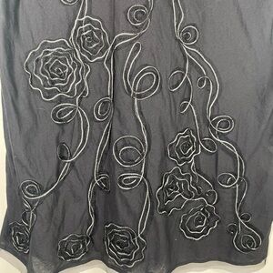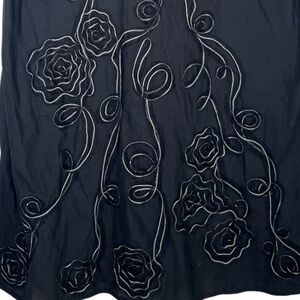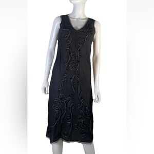 POLECI Black Cotton Midi Slip Dress Sleeveless 3D Flowers Sz 4 Embroidered