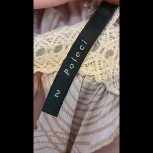 Super cute Poleci dress- lovely for summer with it's spaghetti straps, crocheted and frayed trim, neutral colors and fun pattern- it's perfect for a bbq, the beach, or date night. Excellent condition.