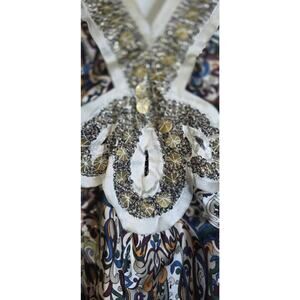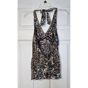 POLECI Designer HALTER Top SHIRT Sheer Side Silk Blend Embellished Size 6