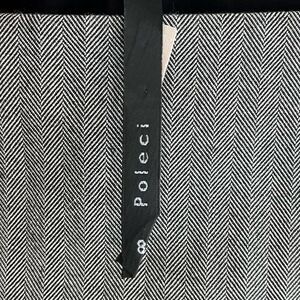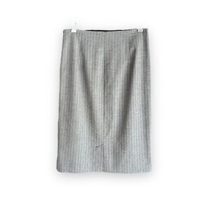Knee-length suit skirt from POLECI. Light gray with soft black chevron/striped pattern, perfect for any business setting. Hidden side zipper. Black lining. Seems like a fitted, straight fit. Excellent preowned condition, nearly brand new! Size 8.