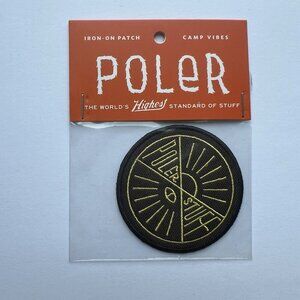 POLER iron on patch camp vibes 2.5" Black + Gold Embroidered