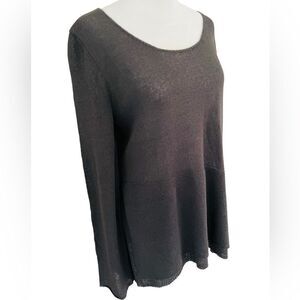 POLES Made in France gray crew neck sweater, rayon polyester, lightweight size L. Asymmetric seaming across the front, bottom half of the sweater is double layer. Great for any season!