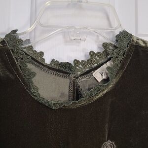 POL Green Velvet Embroidered Sleeveless Top Size Small S