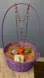 Purple Easter basket of imported goods from Poland! Includes a beautiful purple egg rosary, a chalk stone hand-painted tea light candle, and 3 wooden green, yellow and blue hand-painted eggs in various color accents placed on fresh colored grass made from recycled paper. Lots to love & perfect for Easter!