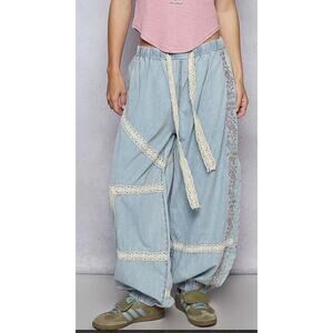 Jogger pants in double gauze with trim point, embroidery detail, normal washing, solid color.
