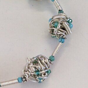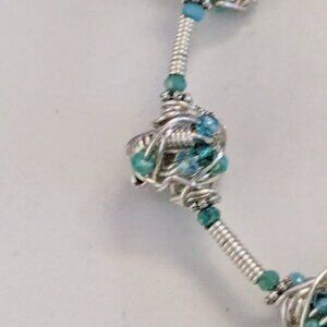 POLLIE Wire Wrapped Faceted Blue Beaded Toggle Clasp Bracelet