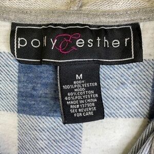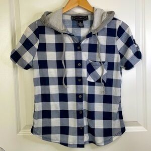 POLLY & ESTHER | Blue & White BUTTON DOWN HOODED SHORT SLEEVE SHIRT SIZE M