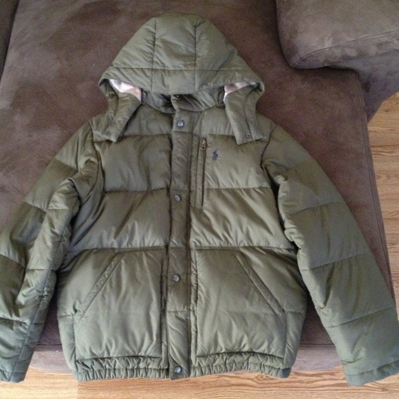This Ralph Lauren Olive Green Polo jacket is really warm. This jacket has stains in the front and a lil on each wrist as you can see in picture. This is a cure jacket to just throw around in.