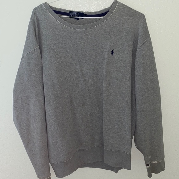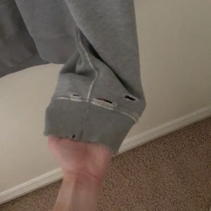 worn a couple of times over sized “worn out” sweatshirt has nice holes at the end of sleeve