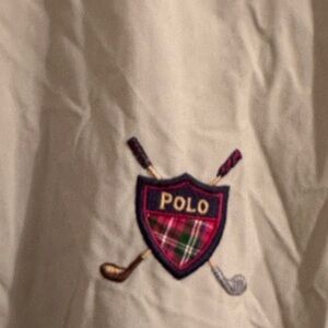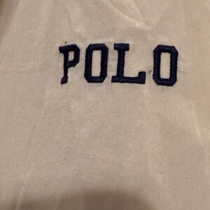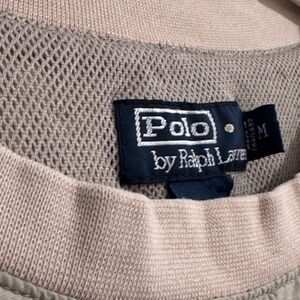 Light tan crewneck with classic Polo logo. Simple and elegant.