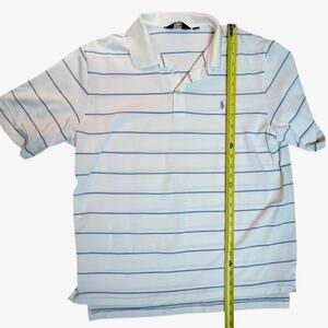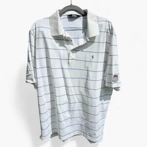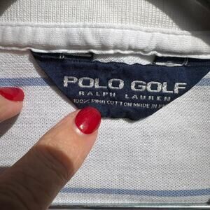 POLO GOLF RALPH LAUREN Men’s L Polo Shirt Crest Pony Striped White Pima Cotton