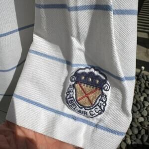 comfort. Designed with timeless horizontal stripes, it features the signature embroidered pony logo on the chest and a unique club crest patch on the sleeve. Perfect for golf, casual wear, or elevating your off-duty look.
