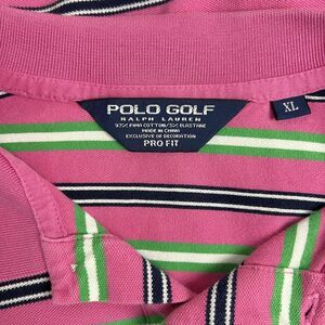 POLO GOLF RALPH LAUREN Pro Fit Polo Pima Cotton Pink Green Stripe Logo Sz XL