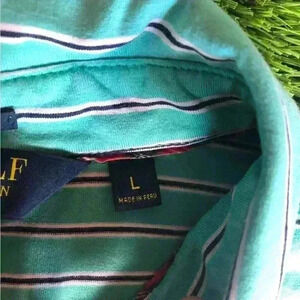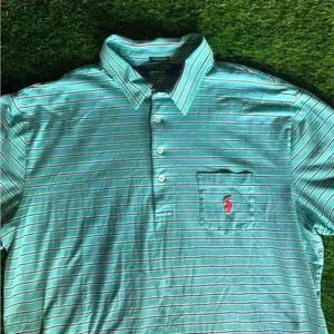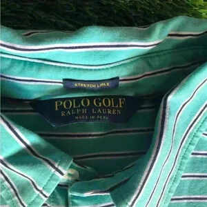 POLO GOLF RALPH LAUREN SHIRT MENS LARGE STRETCH LISLE AQUA STRIPED PIMA COTTON