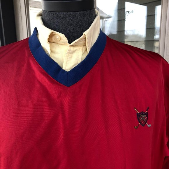 POLO Golf Ralph Lauren Vintage Red V Neck Golf Pull Over Windshirt - Sz LARGE