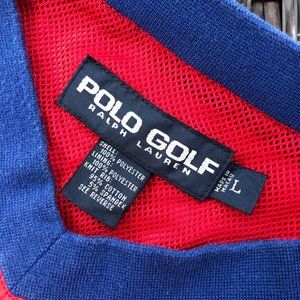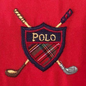 Pure 1990's POLO vintage Gold. In EUC, no staining, no picks, no pulls, no holes or tears. Beautiful bright red body with blue accented V Neck trim. Features ribbed banded cuffs and waistband, dual front Velcro closing pockets and embroidered POLO Golf shield logo on the left chest. Logo of Houston's Tour 18 Golf Course is embroidered on the left sleeve. Men's XL, pit to pit and length measurements are shown in the pictures. Check out my Closet for more great POLO Golf shirts, shorts and pants. $119 retail, thanks for looking. Shirt is NOT included with this listing.