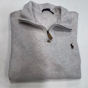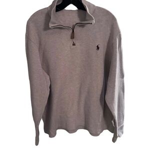 Excellent condition. Worn once. Men’s Polo Ralph Lauren 1/4 zip pullover sweater. Beige, embroidered piny logo, long sleeves, 100% cotton. Size Xl. See photos for measurements MSRP $128