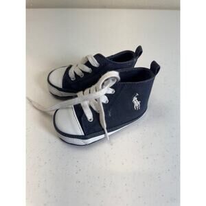POLO RALPH LAUREN Baby High Top Sneakers Navy Blue & White Canvas3 Infant Shoes
