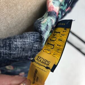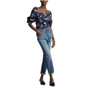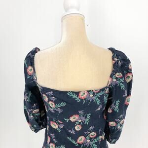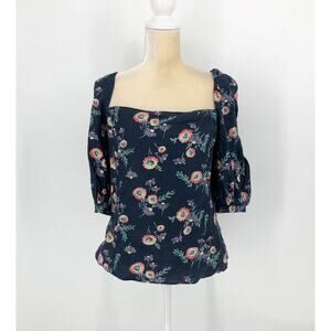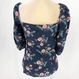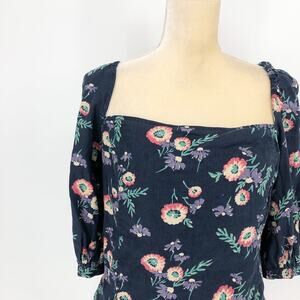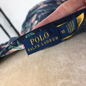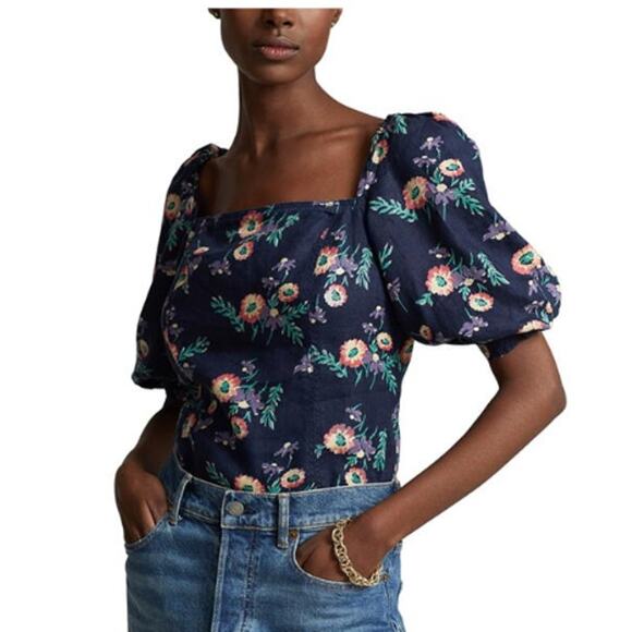 POLO RALPH LAUREN Blouse Sz 18 Linen Puff Sleeve Floral Print Navy Blue
