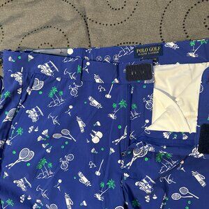 for sale is POLO RALPH LAUREN CLASSIC FIT GOLF SHORTS OR SWIM TRUNKS * PACKABLE IN MATHING POUCH * SIZE 32 MEN NWT $125.00 ** PLEASE CHECK MEASUREMENTS, THE COLOR IS ACORDING TO RALPH LAUREN IS NAVY = SHOW ON THE TAG * LOOKS LIKE ROYAL BLUE = SPORTS LIKE GOLF, TENNIS, PALMS PRINT * with SIDE and BACK POCKETS + RALPH LAUREN LOGO ** Material: NYLON AND ELASTHANE * PLEASE CHECK=MEASUREMETS: 32 =WAIST: 16.5" * TOTAL LENGTH: 19" * INSEAM= 9" MORE OR LESS **