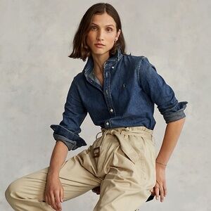 POLO RALPH LAUREN Custom Fit Denim Shirt Long Sleeve Multicolored Pony Logo