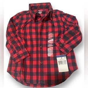 POLO RALPH LAUREN Flannel Shirt Boys Size 18M Buffalo Plaid Cottagec…