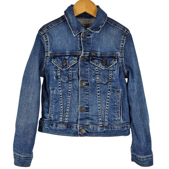POLO RALPH LAUREN GIRLS AUTHENTIC BLUE DENIM GOODS TRUCKER JACKET – SIZE 7 – COTTON BLEND