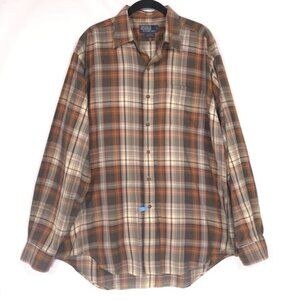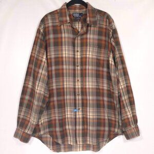 POLO RALPH LAUREN GLOVER Shirt Men's LARGE Cotton Plaid Brown Long Sleeve USA🇺🇸MADE