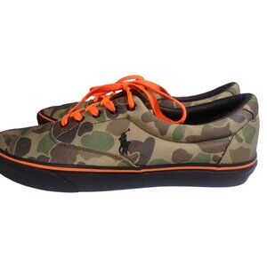 POLO RALPH LAUREN KEATON PONY SNEAKER SHOE CAMO MENS SIZE - 13 ORANGE Accents