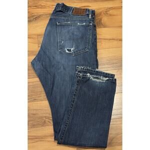 POLO RALPH LAUREN Men 36 X 30 Distressed Classic Fit 100% Cotton Blue Jeans