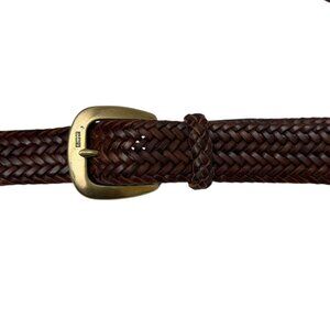POLO RALPH LAUREN Mens Belt Size 40 Brown Woven Leather Classic Preppy Logo