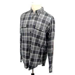 POLO RALPH LAUREN Men's Lightweight Flannel Shirt - Suede Elbow XL Gray Plaid