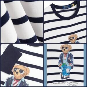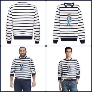 POLO RALPH LAUREN Men’s Navy Blue/White Polo Bear Striped Fleece Sweatshirt
